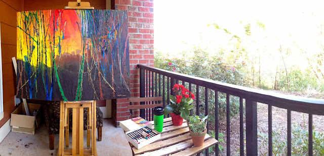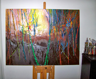 And yet this painting still leaned against the wall calling out to be updated. For months I have wanted to work on this painting, but all I have are watercolors and acrylics, neither of which can be used to paint over an oil painting. Oil paint can go over everything, but water based art supplies won't stick to it.