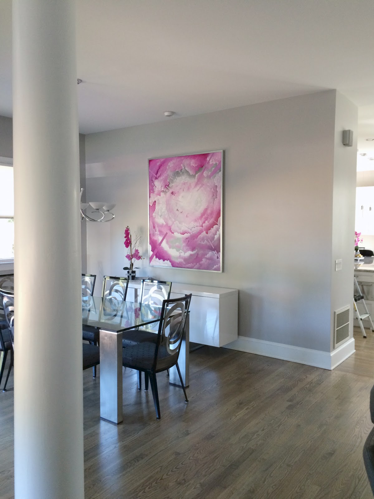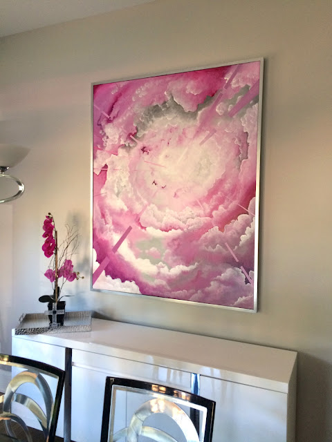 In 2014 I was commissioned to create a painting for a customer in the Lake Norman area. We met and had a brief conversation about what colors she likes and dislikes and about the fact that she wanted the painting to give the experience of looking at clouds - having no intentional imagery, but the opportunity to read into it what one sees in the moment.