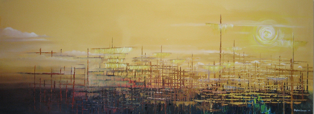 Same as above The Shipyard III 8'x3' Acrylic on Canvas Sold to Bikram Yoga Studio in Mooresville, NC |