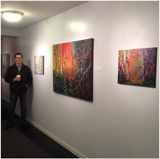 Same as above viewed at a gallery opening with two additional abstract landscape paintings Abstract Landscape 4'x3' Acrylic and Oil and oil pastel on canvas Sold to Collector in NC |